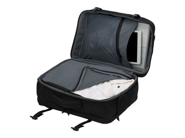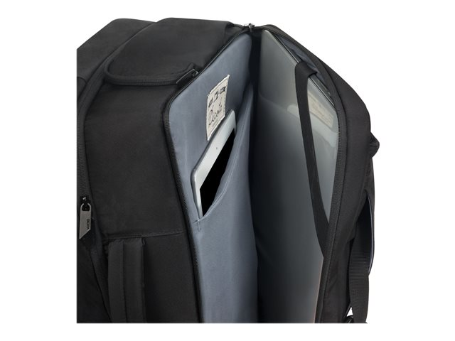 Vous pouvez facilement choisir de l'utiliser comme sac à bandoulière ou comme sac à dos, sans compromettre son ergonomie. Quelques manipulations simples suffisent à transformer le sac à dos en un élégant sac à bandoulière. Les bandoulières rembourrées réglables en longueur assurent un transport confortable. Parfait pour les voyages d'affaires et les week-ends grâce à ses 29 litres. Une poignée de transport ergonomique sur le côté long du sac offre une flexibilité de voyage supplémentaire et la pochette arrière fonctionnelle peut être utilisée pour attacher le sac à dos Dual Plus EDGE à une poignée de trolley - la mobilité à l'état pur. Le compartiment principal généreux offre un espace pour les documents et dispose d'une poche intérieure zippée pour les accessoires, ainsi que d'un organisateur spacieux zippé avec sangle de fixation pour maintenir vos vêtements et votre linge en place durant le voyage. Votre tablette peut être rangée en toute sécurité dans la pochette rembourrée. Les poches pratiques et faciles d'accès du compartiment avant vous permettent d'organiser vos équipements personnels tels que câbles, cartes de visite, cartes d'identité et smartphones. La pochette zippée supplémentaire de la poche extérieure permet d'avoir sous la main à chaque instant d'autres accessoires importants. Utilisez les deux poches latérales pratiques pour accéder rapidement à une bouteille d'eau, un parapluie ou des clés.