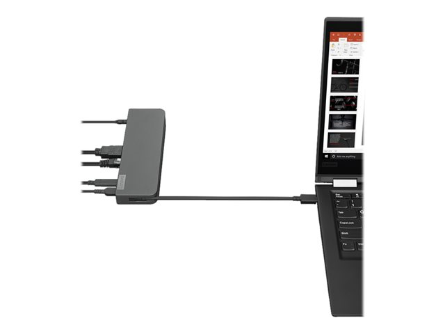 | Interfaces | 1 x combo jack microphone/casque - mini-phone 3,5 mm 1 x USB 2.0 1 x affichage / vidéo - VGA - 15 broches HD D-Sub (HD-15) 1 x audio / vidéo - HDMI - HDMI de 19 broches de type A 1 x réseau - RJ-45 1 x USB 3.1 Gen 1 1 x USB-C 3.1 1 x USB-C (port d'alimentation) |