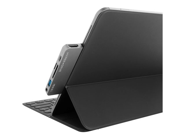 Hub USB-C de forme adaptée pour l'iPad Pro, l'iPad Air et l'iPad mini 6. Cette station d'accueil USB-C se fixe sur le côté de l'iPad en ajoutant 6 ports : Sortie HDMI 4K 60Hz, alimentation USB-C, et plus encore.