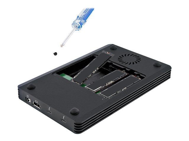 StarTech.com 4 Bay Thunderbolt 3 NVMe Enclosure, For M.2 NVMe Solid State Drives, 1x DisplayPort Video & 2x TB3 Downstream Ports, Up to 40Gbps, 72W Power Supply - 4 Bay M.2 SSD External Hard Drive Enclosure (M2E4BTB3) - Boitier externe - M.2 - M.2 NVMe Card / PCIe (NVMe) - Thunderbolt 3 - noir