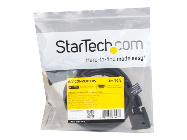 StarTech.com Câble adaptateur DVI vers VGA de 3m - Convertisseur actif DVI-D vers VGA HD15 - M/M - 1920x1200 - Noir - Convertisseur vidéo - DVI - VGA - noir DVI2VGAMM10
