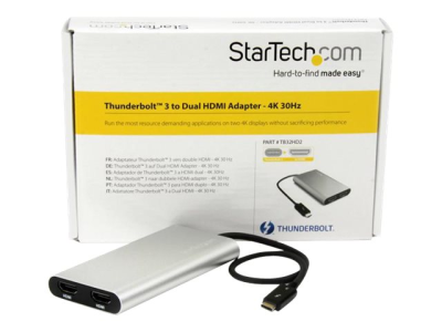StarTech.com Adaptateur Thunderbolt 3 vers double HDMI - Compatible Windows et Mac - 4K 60 Hz (TB32HD24K60) - Câble adaptateur - 24 pin USB-C mâle pour HDMI femelle - 28.4 m - argent - actif, support 4K60Hz (4096 x 2160) - pour P/N: TB33A1C