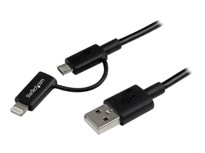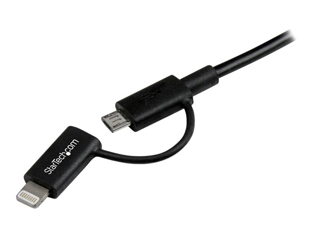 StarTech.com Câble Lightning 8 broches ou Micro USB vers USB de 1 m - Cordon de charge / synchronisation - Noir (LTUB1MBK) - Câble de chargement / de données - USB mâle pour Micro-USB de type B, Lightning mâle - 1 m - blindé - noir - pour P/N: ARMTBLTDT, ARMTBLTIW, SECTBLTDT, SECTBLTPOS, STNDTBLT1A5T, STNDTBLT1FS, STNDTBLTMOB