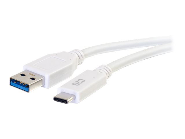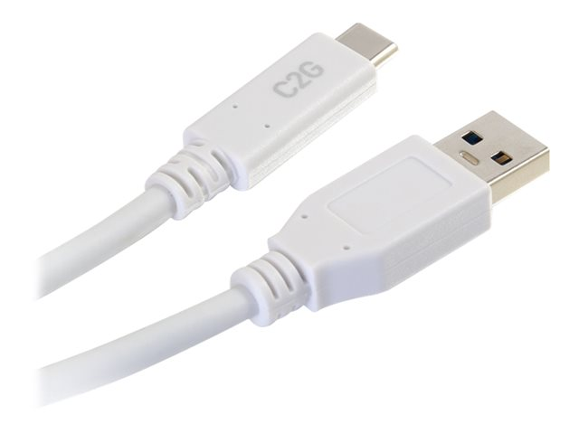 C2G 10ft USB C 3.0 to USB Cable - USB C to USB A - M/M - Câble USB - USB type A (M) pour 24 pin USB-C (M) - USB 3.1 - 30 V - 3 A - 3.05 cm - blanc 28837