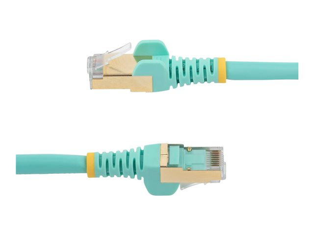 StarTech.com 7.5m CAT6A Ethernet Cable, 10 Gigabit Shielded Snagless RJ45 100W PoE Patch Cord, CAT 6A 10GbE STP Network Cable w/Strain Relief, Aqua, Fluke Tested/UL Certified Wiring/TIA - Category 6A - 26AWG (6ASPAT750CMAQ) - Cordon de raccordement - RJ-45 (M) pour RJ-45 (M) - 7.5 m - STP - CAT 6a - moulé, sans crochet - turquoise 6ASPAT750CMAQ