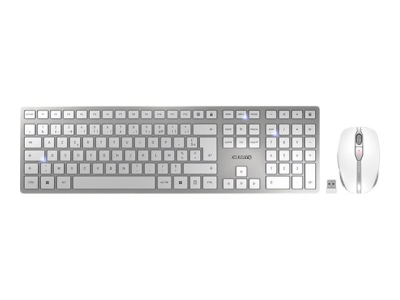 CHERRY DW 9100 SLIM - Ensemble clavier et souris - sans fil - 2.4 GHz, Bluetooth 4.2 - AZERTY - Français - blanc, argent JD-9100FR-1