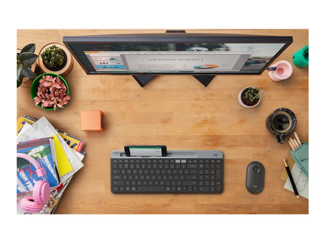 Logitech Pebble M350 - Souris - optique - 3 boutons - sans fil - Bluetooth, 2.4 GHz - récepteur sans fil USB - graphite