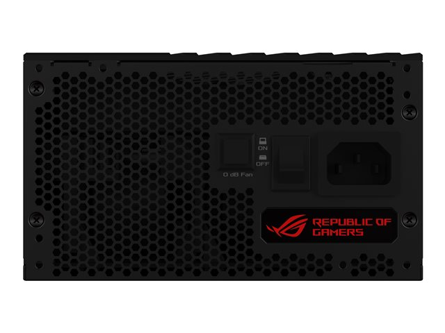 | Fonctions | Câbles à manchon, protection contre les surintensités, protection contre les surtensions, protection de surtension, protection de court-circuit, protection thermique, affichage OLED, entièrement modulaire, ASUS Aura Sync, refroidissement de 0 dB avec ventilateur à ailettes IP5X antipoussière, dissipateur thermique ROG |