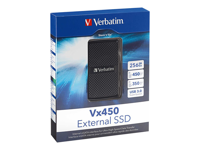 Le SSD externe Vx450 est une solution de stockage de données de haute performance, idéale pour la sauvegarde et le stockage de fichiers volumineux telles que les vidéos HD. Elégant, compact et léger, l'appareil est 65% plus petit et 70% plus léger qu'un disque dur externe standard. Avec une vitesse de transfert de données allant jusqu'à 450MB/seconde, le SSD Vx450 est quatre fois plus rapide qu'un disque dur externe 3.0. (30 secondes) et trente fois plus rapide qu'un HDD USB 2.0 flash Drive (360 secondes).