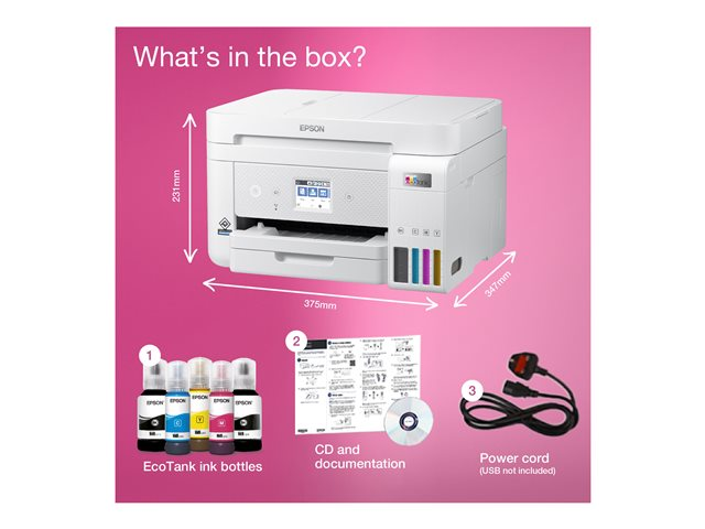 Économisez jusqu'à 90 % sur vos coûts d'impression avec les imprimantes et multifonctions EcoTank sans cartouche d'Epson. Fourni avec des bouteilles d'encre haute capacité, ses réservoirs d'encre intégrés sont faciles à remplir grâce aux bouteilles d'encre spécialement conçues. Sans aucune cartouche à remplacer et doté de fonctionnalités de connectivité flexibles, d'un fax et d'un chargeur automatique de documents, ce multifonction est idéal pour les personnes qui recherchent des impressions de haute qualité et un coût par page incroyablement bas.