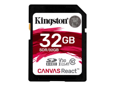 Kingston Canvas React - Carte mémoire flash - 32 Go - A1 / Video Class V30 / UHS-I U3 / Class10 - SDHC UHS-I
