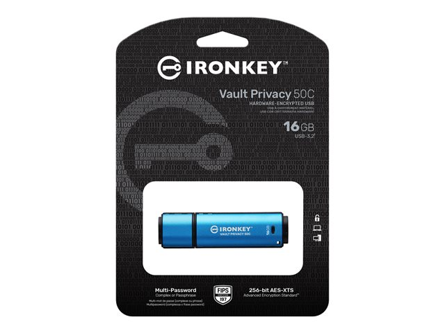 Kingston IronKey Vault Privacy 50C - Clé USB - chiffré - 16 Go - USB-C 3.2 Gen 1 - Conformité TAA
