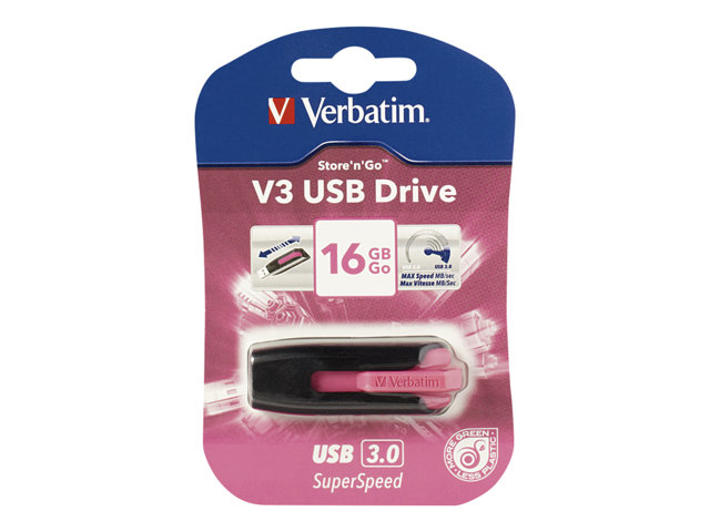 Verbatim Store 'n' Go V3 - Clé USB - 16 Go - USB 3.0 - rose chaud