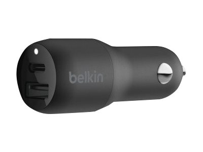 Belkin BOOST CHARGE Car Charger - Adaptateur d'alimentation pour voiture - 30 Watt - 3.6 A - 2 connecteurs de sortie (USB, USB-C) - noir