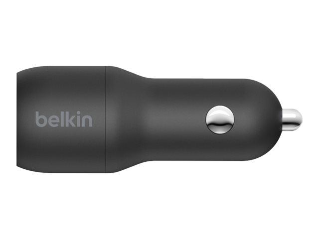Belkin BOOST CHARGE Double chargeur - Adaptateur d'alimentation pour voiture - 24 Watt - 4.8 A - 2 connecteurs de sortie (USB) - sur le câble : USB-C - noir