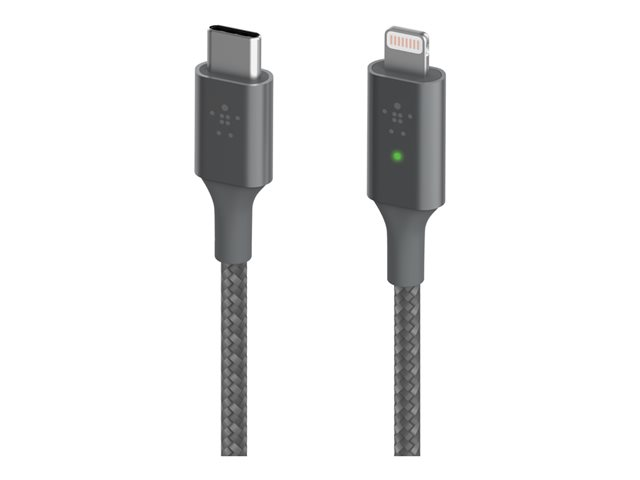 Belkin BOOST CHARGE Smart - Câble Lightning - 24 pin USB-C mâle pour Lightning mâle - 1.2 m - gris - Prise en charge de Power Delivery