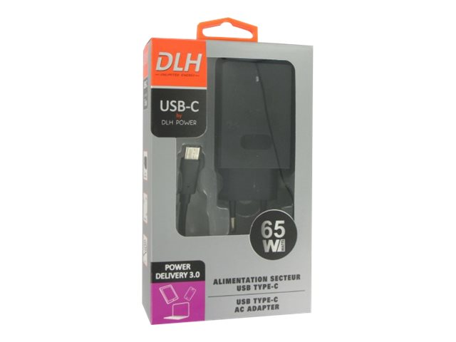 DLH DY-AI4165 - Adaptateur secteur - 65 Watt - 3.25 A - PD 3.0 (24 pin USB-C) - sur le câble : USB-C - noir