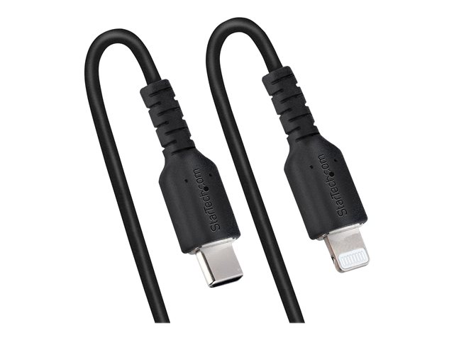 StarTech.com Câble USB-C vers Lightning de 50cm - Adaptateur USB C vers Lightning Noir Certifié Mfi, Gaine en TPE - Câble USB Type-C/Lightning - Chargeur USB-C vers Iphone (RUSB2CLT50CMBC) - Câble Lightning - 24 pin USB-C mâle pour Lightning mâle - 50 cm - noir - bobiné