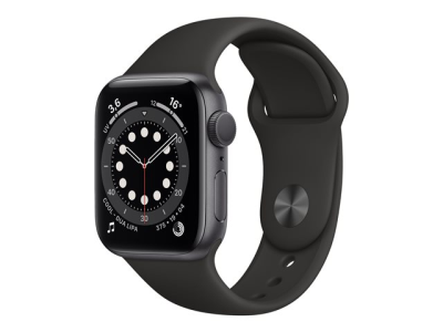 Apple Watch Series 6 (GPS) - 40 mm - espace gris en aluminium - montre intelligente avec bande sport - fluoroélastomère - noir - taille du bracelet : S/M/L - 32 Go - Wi-Fi, Bluetooth - 30.5 g MG133NF/A