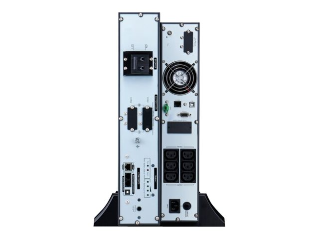 FonctionsSystème de commande et de contrôle de l'état LCD, sans mercure, sans métaux lourds toxiques, rack/tour convertible, signal sonore, Écran LCD, dérivation interne, voyants lumineux, auto-test automatique, Eco-Mode, Gestion intelligente de batterie, double conversion