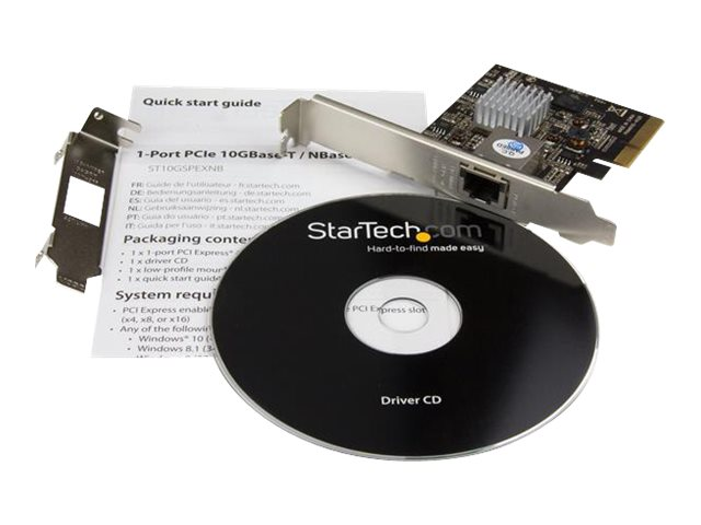 StarTech.com Carte réseau PCI Express à 1 port 10GBase-T / NBASE-T Ethernet avec support pour 5 vitesses : 10 G/5 G/2,5 G/1 G/100 Mb/s - Adaptateur réseau - PCIe 2.0 x4 profil bas - 1000Base-T x 1 - noir ST10GSPEXNB