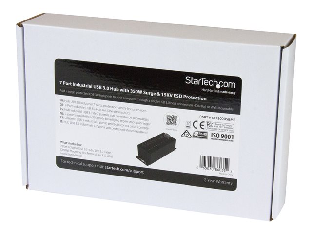 StarTech.com Hub USB 3.0 industriel à 7 ports - Concentrateur USB 3.0 avec protection contre ESD (DES) - Concentrateur (hub) - 7 x SuperSpeed USB 3.0 - Montage sur rail DIN, fixation murale - Tension CC - pour P/N: ITB20D3250, USB312SAT3CB, USB315CB2M, USBLT1MWS, USBLT2MBR, USBLTM1MBK, USBLTM1MWH