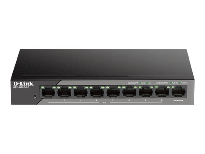 D-Link DSS 100E-9P - Commutateur - non géré - 8 x 10/100 (PoE) + 1 x 1000Base-T - de bureau - PoE (92 W)