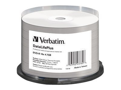 Verbatim DataLifePlus - 50 x DVD-R - 4.7 Go 16x - surface imprimable thermique large - spindle 43782